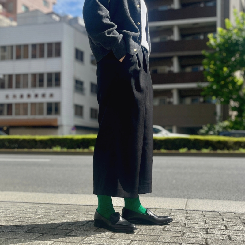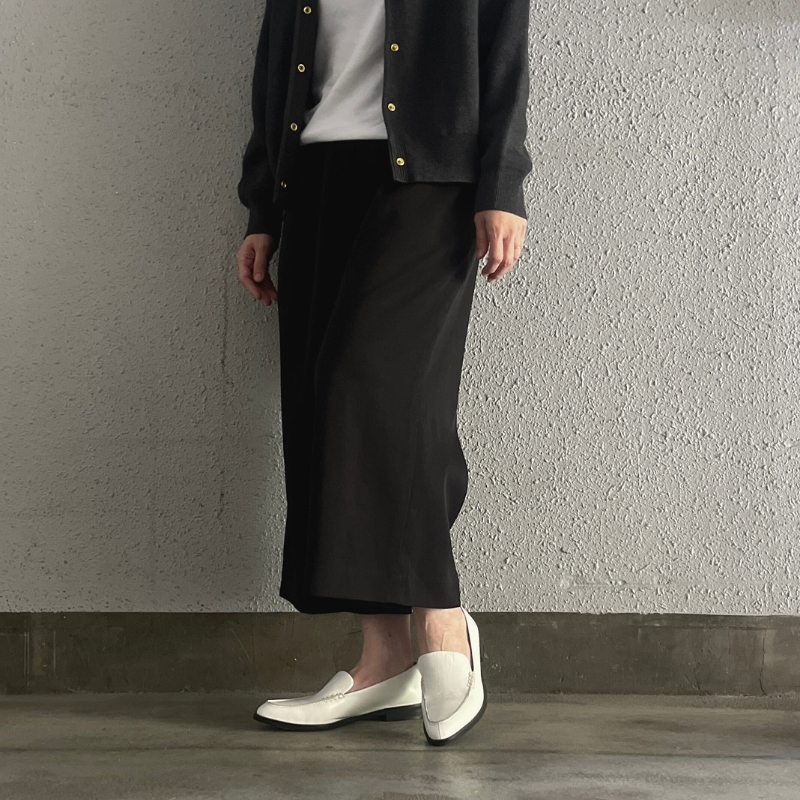 ホワイトとブラックの2色を履いて、それぞれの印象を楽しみました!すっきりとしたフォルムで、パンツにもスカートにも合わせやすい万能なデザインです。シンプルながらも素材感が映えるので、コーディネート全体を程よく引き締めてくれます。カジュアルにもきれいめにも馴染む一足です。