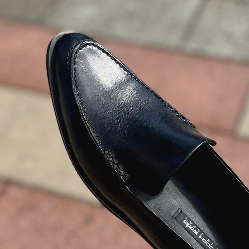 worksのオールウェザーアイテムとして登場したローファーなので、雨の日も安心して履ける心強い存在。ステッチ裏にも防水テープを施しているので、水の浸入をしっかり防いでくれます。機能性はもちろん、ロールステッチによる立体的な表情と革の風合いで、上質さもしっかり感じられます。