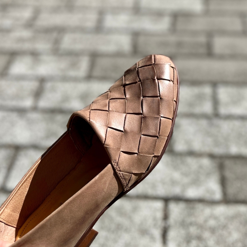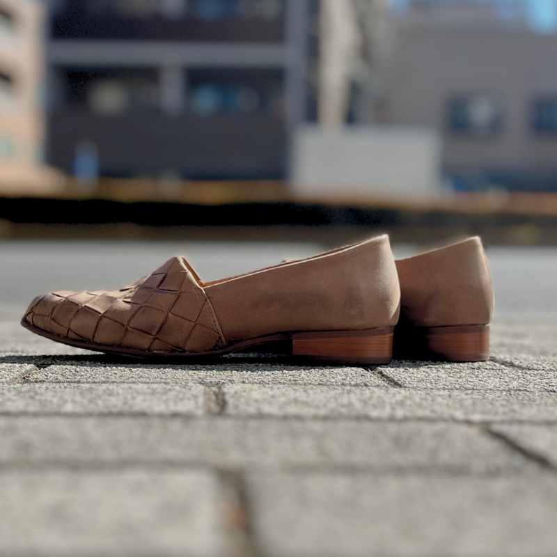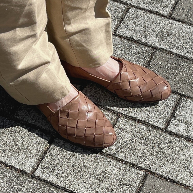 編み込みの表情が足元にさりげないニュアンスをプラス。程よい存在感で、日常のスタイルにも取り入れやすいメッシュスリッポンです。